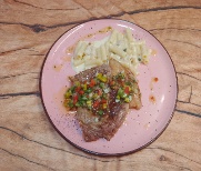 Bife de chorizo e sorrentinos de queijo búfala; mel e nozes - 500gr de bife de chorizo argentino (aqui no Brasil contra filé); q.b. sal grosso; 200gr de Massa fresca;