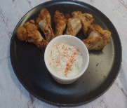 Fried Chicken (spicy drumets) with blue cheese sauce - 1 Kg Coxinha da asa (drumets);