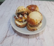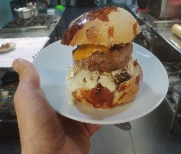 Hambúrguer de cebola caramelizada - Pão brioche;