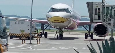 No espelho d'água você pode acompanhar aviões temáticos. Esse parece aquele desenho da Disney, a Margarida. Pra adulto não é muita coisa, mas criança vai gostar muito. Clique aqui para a versão natural desta foto no Instagram. |