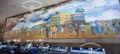 Vista mais acentuada do painel no saguão do aeroporto Santos Dumont, o ambiente é bem esse aqui. Clique aqui para a versão natural desta foto no Instagram. |