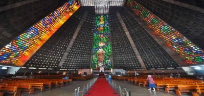 Na foto da catedral (com iluminação rosa), mostra um novo pensamento da igreja... no topo do versão iluminada em rosa, o Cristo Redentor (bem longe). A estátua destacada à direita trata-se do papa João Paulo II que realizou uma missa nesta catedral em 1980, outro papa foi Francisco em 2013 por conta da Jornada Mundial da Juventude. Esta catedral teve suas obras iniciadas em 1964 (ano conturbado na história do Brasil), portanto, uma catedral relativamente "nova", por se tratar de uma catedral. Uma curiosidade, foi que o papa Francisco na jornada da juventude FECHOU as portas da catedral para ficar somente com os jovens que estavam participando da jornada.