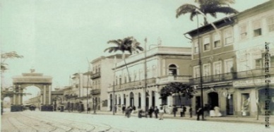 Foto de 1894 quando os republicanos construíram um arco triunfal para comemorar o quinto aniversário da proclamação da república. O palácio Itamaraty aparece ao meio ladeado por palmeiras. Clique aqui para a versão natural desta foto no Instagram. |