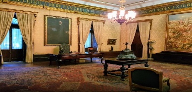Continuando a sala do diplomata Barão do Rio Branco. Nas fotos que falo sobre o palácio do catete, acredite, os republicanos adotaram uma bandeira parecida com a dos EUA. A diferença era as cores verde e amarelo no lugar das cores vermelho e branco americana. O Brasil se chamava ESTADOS UNIDOS DO BRASIL. Veja a inscrição acima (deve estar sofrendo restaração) e espero que preservem esse fato. No alto está escrito: RELAÇÕES EXTERIORES DOS ESTADOS UNIDOS DO BRASIL, até o nome do Brasil passou por modificações (o que a escola não ensina). Clique aqui para a versão natural desta foto no Instagram. |