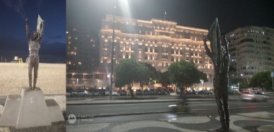 Eis a estátua de Ayrton Senna. Fica no lado oporto da rua em frente ao hotel Copa. Se o hotel é tão visulizado; filmado... talvez fosse natural ter a imagem do ídolo de frete para a praia (como a foto de Ibraim Sued), mas isso talvez seja porque a estátua de Ayrton tem nada a ver com o hotel, colocaram nesta posição devido à alta circulação de turistas que conhecem muito bem o piloto brasileiro. A foto fica de costas pra praia, de frente ao hotel. Clique aqui para a versão natural desta foto no Instagram. |