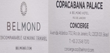 É possível curtir um "café da manhã" de 1ª qualidade no hotel, por volta de R$220,00 (à beira da piscina). De segunda à sexta (é preciso reservar com antecedência), pois a procura é grande. Nos sábados; domingos e feriados é só para os hóspedes. Eis o cartão recente deles, pode copiar se quiser. TUDO vale a pena (apesar do preço). Eles acabam de receber o prêmio de MELHOR ATENDIMENTO DO BRASIL em hotelaria, uma verdadeira jóia do Rio de Janeiro, inclusive, o ex presidente dos EUA John Kennedy se hospedou no Copacabana Palace. Apesar do tempo, é um hotel de excelência!