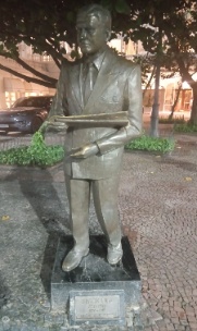 Estátua de Ibrahim Sued que foi jornalista do jornal O Globo e apresentador (colunista social que marcou história - influenciou outros grande jornalistas como Ricardo Boechat). Fazia muitas matérias sobre o Copacabana Palace e inclusive festas! Entrevistava pessoas importantes que passavam pelo hotel como o presidente americano John Kennedy. Foi muito criticado por ser jornalista e cometer muitos erros de português, mas seus erros de português se tornaram até jargãos. Dizem que algumas marchinhas de carnaval o citavam. Na 4ª coluna deste site, deixei um link que fala sobre sua hisória (se tiveres interesse, cole no Google e leia a reportagem). Clique aqui para a versão natural desta foto no Instagram. |