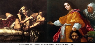 Esse opressor era um general de Nabucodonosor que se chamava Holofernes. Ele interrompeu o fluxo da água até a cidade de Betulia (onde estava o povo judeu), para que desistissem de seu Deus e passasse a reverenciar Nabucodonosor. Então apareceu Judith (veja como o artista Cristofano Allori escreve o nome de Judith em 1613), dá uma ideia que seja esta mulher (eu não beberia dessa água nunca), cruzes!!!