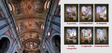 A história da igreja da Candelária (um dos icones di turismo no RJ) é inegavelmente linda! Como já disse, foi a promessa de um casal de espanhóis (Antônio Martins da Palma e sua esposa, Leonor Gonçalves), que em meio a uma tempestade, prometeu à Nsa Sra da Candelária (santa devota) que hergueria para a mesma um templo em homenagem no primeiro porto que conseguissem chegar à salvo. Na figura, A NAVE CENTRAL DA IGREJA onde você pode ver os "capítulos desta promessa". Obra do pintor foi João Zeferino da Costa em 1811.