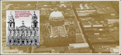 Nesta vista aérea, construíram a igreja no formato de uma CRUZ LATINA (tente reparar aqui do alto e verás que é o formato de uma cruz). Diversas partes da cúpula foram construídas em Lisboa (Portugal), assim como as estátuas que enfeitam a faixada hoje.