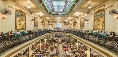 Desde 1942, o prédio; móveis; espelhos e pisos ainda são originais em seu salão que é uma réplica do navio português Serpa Pinto.