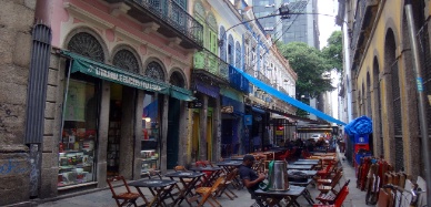 In the past it was houses, nowaday it is shops... at Arco do Teles (ouristic place at Rio de Janeiro). Generally on weekends they put tables to drink bear and have dinner or lunch too. In this streets has lived Carmam Mirand (little notable), she was born in Portugal, but loved to be considerated brazilian. She was the brazilian artist more well paid from Hollywood until today.