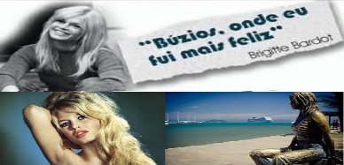 Eis a praia de Búzios, na região dos Lagos, RJ. Em destaque, a atriz francesa Brigitte Bardot que deu reconhecimento internacional à esta praia que até então era desconhecida (época inicial, não havia nem luz). De quaquer forma, a paixão desta famosa pela praia lançou reconhecimento ao mundo, pois até então Búzios era somente um lugarejo que na história foi habitada por índios; portugueses e piratas franceses. Búzios na história foi também um triste ponto de passagem de escravos negreiros.