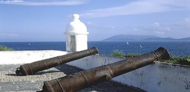 Em 1617, o Forte de Santo Inácio foi substituído pelo Forte São Mateus (este que você vê hoje), construído em ponto mais estratégico nesta ilhota que avança sobre o mar. Clique aqui para a versão natural desta foto no Instagram. |