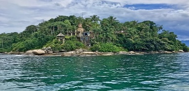 Este é o FORTE DA ILHA DO MANTIMENTO (veja na segunda foto do FORTE TAPERA OU FORTE DA PONTA GROSSA), a ilha que faz "fogo cruzado" com o forte da Ponta grossa. Olhando bem a foto, avistarás um castelo, é exatamente isso, um castelo (provavelmente do séc. XVI) beirando o mar entre as árvores da ilha. A fauna aqui é rica e o italiano "dono da ilha" tem contribuído bastante reformando este castelo. O forte da Ilha do mantimento foi um fortim para proteger a Baia de Paraty e completar toda uma estratégia de Portugal para proteger a ilha no cliclo do ouro e do açúcar (os primeiros engenhos de açúcar do Brasil) surgiram aqui, mais tarde deram orígem à famosa cachaça artesanal de Paraty. Clique aqui para a versão natural desta foto no Instagram. |
