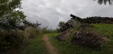 Esta muralha (que segue o canhão da foto anterior), "veja ao fundo outro canhão", nesta muralha ficavam enfileirados outros canhões. Este FORTE TAPERA ou FORTE DA PONTA GROSSA foi parte de uma estratégia para acertar o navo inimigo em 2 lados (trocando fogo com a ilha do mantimento). Clique aqui para a versão natural desta foto no Instagram. |