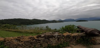 A frente dos canhões, é possível uma visão ampla da Baia de Paraty (antigo Vila de São Roque), o que o forte precisava defender e estava equipada por canhões com alcance de 200m para bolas de canhão de 6kg. Clique aqui para a versão natural desta foto no Instagram. |